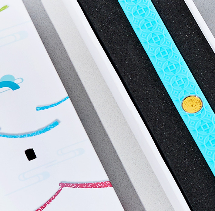 矽膠款則是選中我設計的樣式,平安款同樣是根據媽祖的典故,以反覆且深度不同的波浪去描繪出波濤洶湧的模樣;招財款則以簡單、意義好懂的銅錢作為主要元素。